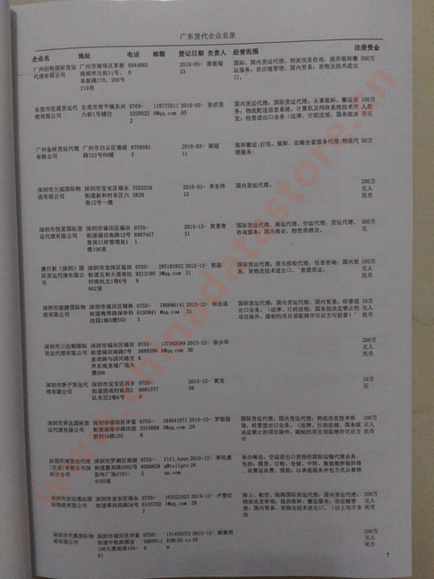 廣東貨運代理公司名單數(shù)據(jù)為Excel格式,信息可任意修改、復制、打印、導出及導入到傳真、郵件群發(fā)等軟件中,無任何限制。