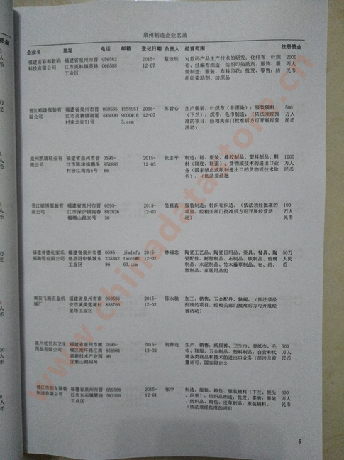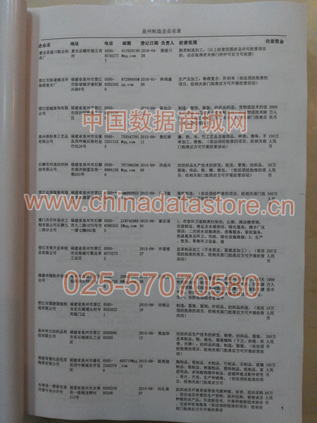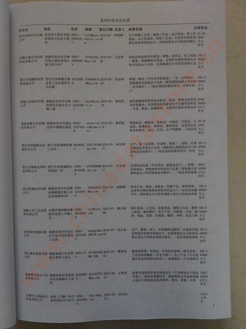 2021版最新泉州企業(yè)黃頁(yè)包括《泉州制造企業(yè)黃頁(yè)》、《泉州貿(mào)易企業(yè)黃頁(yè)》、《泉州民營(yíng)企業(yè)黃頁(yè)》、《泉州外資企業(yè)黃頁(yè)》、《泉州外貿(mào)企業(yè)黃頁(yè)》共五冊(cè),現(xiàn)優(yōu)惠價(jià):280元/冊(cè)。每?jī)?cè)內(nèi)容包括:?jiǎn)挝幻Q(chēng)、地址、郵編、電話、傳真、郵箱、經(jīng)營(yíng)范圍等;泉州企業(yè)黃頁(yè)涵蓋了近幾年來(lái)最新成立的、有一定規(guī)模的企業(yè),具有非常高的營(yíng)銷(xiāo)價(jià)值。有了這套黃頁(yè)開(kāi)展業(yè)務(wù)也有了針對(duì)性,也省去了盲目去尋找客戶名單而浪費(fèi)的時(shí)間了,工作效率也會(huì)有很大的提高。歡迎需要泉州企業(yè)黃頁(yè)的朋友及時(shí)聯(lián)系我們!