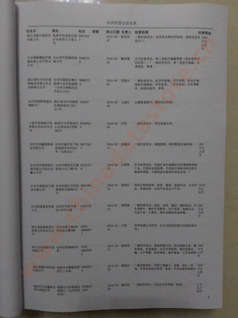 2021版最新臺(tái)州企業(yè)黃頁(yè)包括《臺(tái)州制造企業(yè)黃頁(yè)》、《臺(tái)州貿(mào)易企業(yè)黃頁(yè)》、《臺(tái)州民營(yíng)企業(yè)黃頁(yè)》、《臺(tái)州外資企業(yè)黃頁(yè)》、《臺(tái)州外貿(mào)企業(yè)黃頁(yè)》共五冊(cè),現(xiàn)優(yōu)惠價(jià):280元/冊(cè)。每?jī)?cè)內(nèi)容包括:?jiǎn)挝幻Q(chēng)、地址、郵編、電話、傳真、郵箱、經(jīng)營(yíng)范圍等;臺(tái)州企業(yè)黃頁(yè)涵蓋了近幾年來(lái)最新成立的、有一定規(guī)模的企業(yè),具有非常高的營(yíng)銷(xiāo)價(jià)值。有了這套黃頁(yè)開(kāi)展業(yè)務(wù)也有了針對(duì)性,也省去了盲目去尋找客戶(hù)名單而浪費(fèi)的時(shí)間了,工作效率也會(huì)有很大的提高。歡迎需要臺(tái)州企業(yè)黃頁(yè)的朋友及時(shí)聯(lián)系我們!