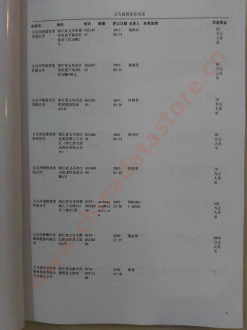 2021版最新義烏企業(yè)黃頁包括《義烏制造企業(yè)黃頁》、《義烏貿(mào)易企業(yè)黃頁》、《義烏民營企業(yè)黃頁》、《義烏外資企業(yè)黃頁》、《義烏外貿(mào)企業(yè)黃頁》共五冊(cè),現(xiàn)優(yōu)惠價(jià):280元/冊(cè)。每冊(cè)內(nèi)容包括:單位名稱、地址、郵編、電話、傳真、郵箱、經(jīng)營范圍等;義烏企業(yè)黃頁涵蓋了近幾年來最新成立的、有一定規(guī)模的企業(yè),具有非常高的營銷價(jià)值。有了這套黃頁開展業(yè)務(wù)也有了針對(duì)性,也省去了盲目去尋找客戶名單而浪費(fèi)的時(shí)間了,工作效率也會(huì)有很大的提高。歡迎需要義烏企業(yè)黃頁的朋友及時(shí)聯(lián)系我們!