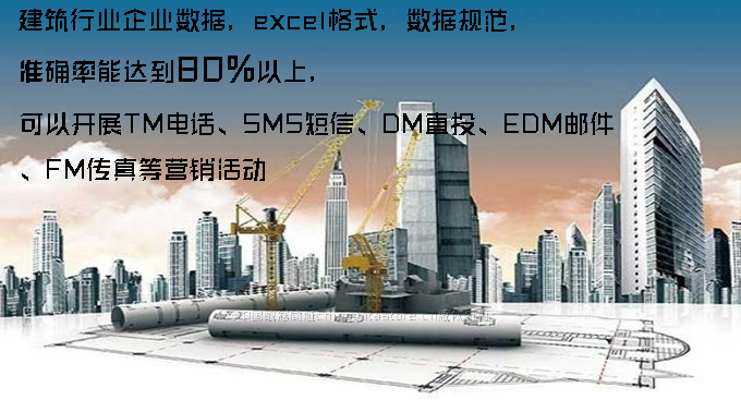 最新建筑工程生產與貿易企業(yè)黃頁數據更新日期2025年12月最新,全國建筑工程企業(yè)名單共165000條,都是具有一定規(guī)模的建筑工程行業(yè)的注冊實體企業(yè),數據準確率高,是您開展各項營銷活動的必備資料。建筑工程企業(yè)黃頁包括:企業(yè)名稱、地址、電話、傳真、郵箱、登記日期、經營范圍、注冊資金等信息。建筑工程企業(yè)名單數據為Excel格式,信息可任意修改、復制、打印、導出及導入到傳真、郵件群發(fā)等建筑工程中,無任何限制。