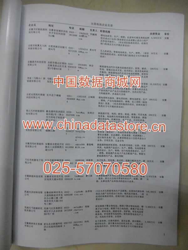 | 某省或直轄市 | 如上海、浙江電池企業(yè)名單 | 80% - 90% | 600元 | 附贈一冊電池紙質(zhì)印刷品 |