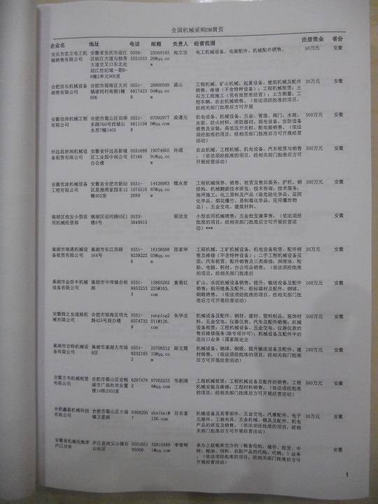 2025年新版中國機械采購企業(yè)黃頁,收錄了全國各地經(jīng)營范圍涉及機械產(chǎn)品的貿(mào)易企業(yè),這些都是頗具實力的機械產(chǎn)品的中國采購商。黃頁內(nèi)容包含:企業(yè)名稱、地址、電話、傳真、郵箱、經(jīng)營范圍、省份、注冊資金等信息。該套黃頁包含一個黃頁光碟加一冊紙質(zhì)書刊,全國價格:1500元,省/直轄市價格:400元,城市價格:200元,共收錄了全國各地大概63139(統(tǒng)計日期:2018.1)家機械產(chǎn)品采購企業(yè)。黃頁光碟中是EXCEL格式,信息可任意修改、復(fù)制、打印、導(dǎo)出及導(dǎo)入到傳真、郵件群發(fā)等軟件中,無任何限制。