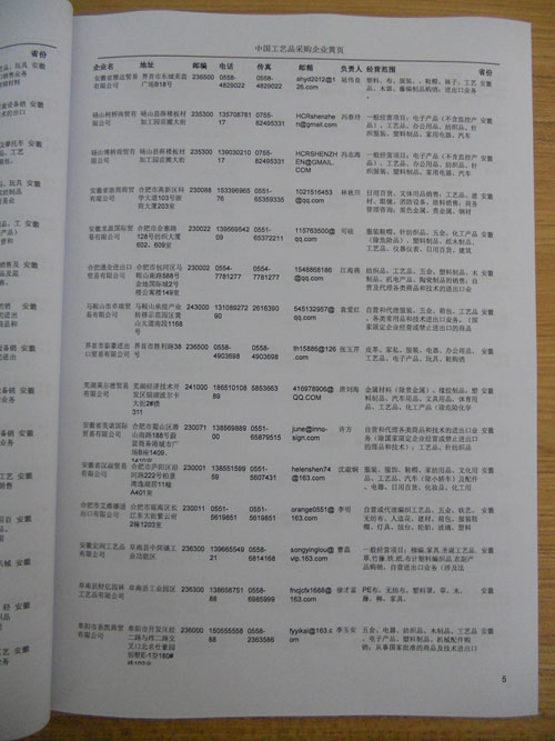 2025年新版中國(guó)工藝品采購(gòu)企業(yè)黃頁(yè),收錄了全國(guó)各地經(jīng)營(yíng)范圍涉及工藝品產(chǎn)品的貿(mào)易企業(yè),這些都是頗具實(shí)力的工藝品產(chǎn)品的中國(guó)采購(gòu)商。黃頁(yè)內(nèi)容包含:企業(yè)名稱、地址、電話、傳真、郵箱、經(jīng)營(yíng)范圍、省份、注冊(cè)資金等信息。該套黃頁(yè)包含一個(gè)黃頁(yè)光碟加一冊(cè)紙質(zhì)書刊,全國(guó)價(jià)格:1500元,省/直轄市價(jià)格:400元,城市價(jià)格:200元,共收錄了全國(guó)各地大概7451(統(tǒng)計(jì)日期:2018.1)家工藝品產(chǎn)品采購(gòu)企業(yè)。黃頁(yè)光碟中是EXCEL格式,信息可任意修改、復(fù)制、打印、導(dǎo)出及導(dǎo)入到傳真、郵件群發(fā)等軟件中,無(wú)任何限制。
