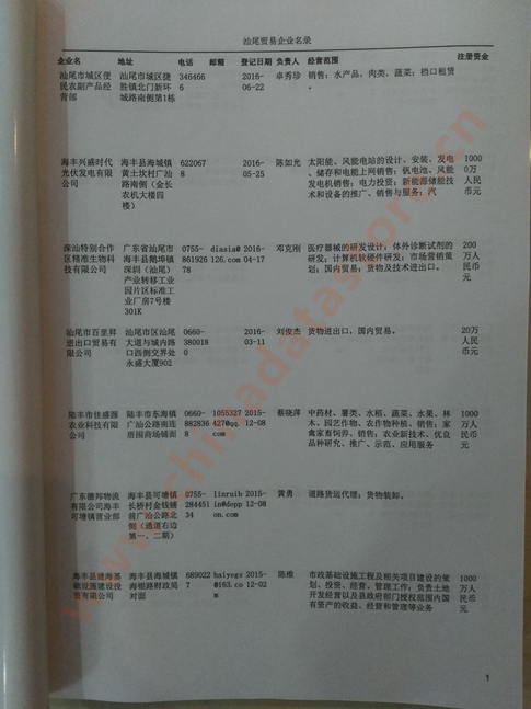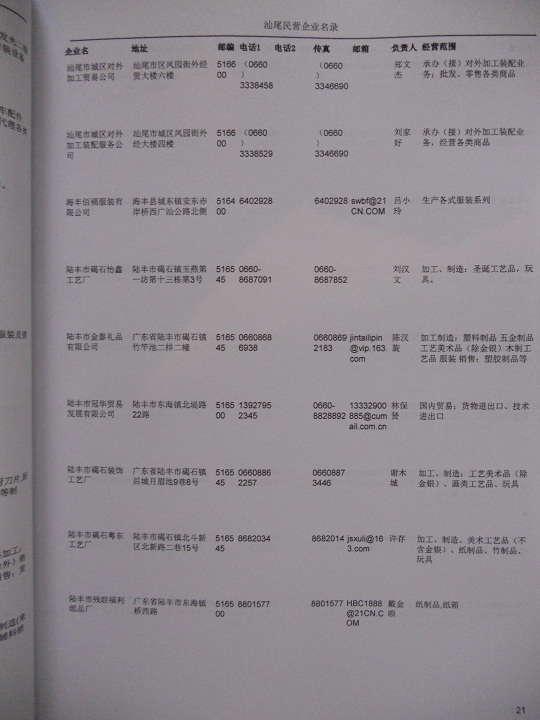 2021版最新汕尾企業(yè)黃頁包括《汕尾制造企業(yè)黃頁》、《汕尾民營企業(yè)黃頁》,現(xiàn)優(yōu)惠價:280元/冊。每冊內(nèi)容包括:單位名稱、地址、郵編、電話、傳真、郵箱、經(jīng)營范圍等;汕尾企業(yè)黃頁涵蓋了近幾年來最新成立的、有一定規(guī)模的企業(yè),具有非常高的營銷價值。有了這套黃頁開展業(yè)務(wù)也有了針對性,也省去了盲目去尋找客戶名單而浪費(fèi)的時間了,工作效率也會有很大的提高。歡迎需要汕尾企業(yè)黃頁的朋友及時聯(lián)系我們!