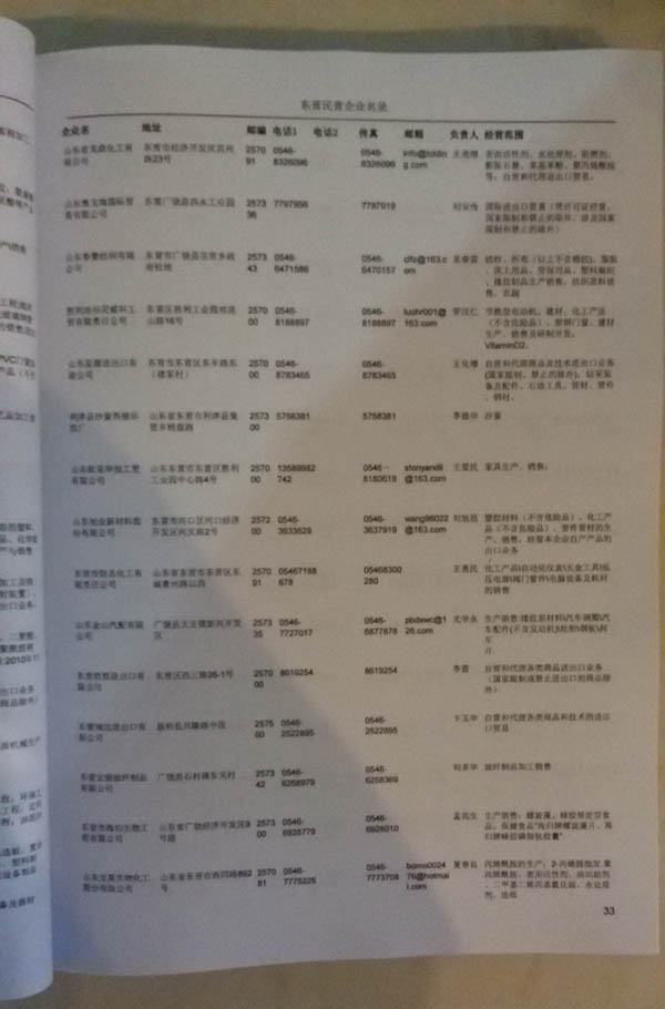 2021版最新東營企業(yè)黃頁包括《東營制造企業(yè)黃頁》、《東營民營企業(yè)黃頁》,現(xiàn)優(yōu)惠價:280元/冊。每冊內(nèi)容包括:單位名稱、地址、郵編、電話、傳真、郵箱、經(jīng)營范圍等;東營企業(yè)黃頁涵蓋了近幾年來最新成立的、有一定規(guī)模的企業(yè),具有非常高的營銷價值。有了這套黃頁開展業(yè)務(wù)也有了針對性,也省去了盲目去尋找客戶名單而浪費(fèi)的時間了,工作效率也會有很大的提高。歡迎需要東營企業(yè)黃頁的朋友及時聯(lián)系我們!