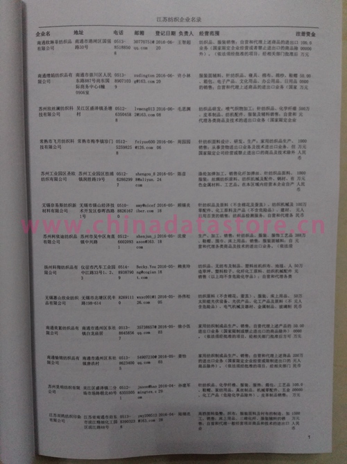 | 江蘇紡織企業(yè)黃頁 | 所有江蘇紡織企業(yè)黃頁 | 80% - 90% | 600元 | 附贈一冊江蘇紡織紙質印刷品 |