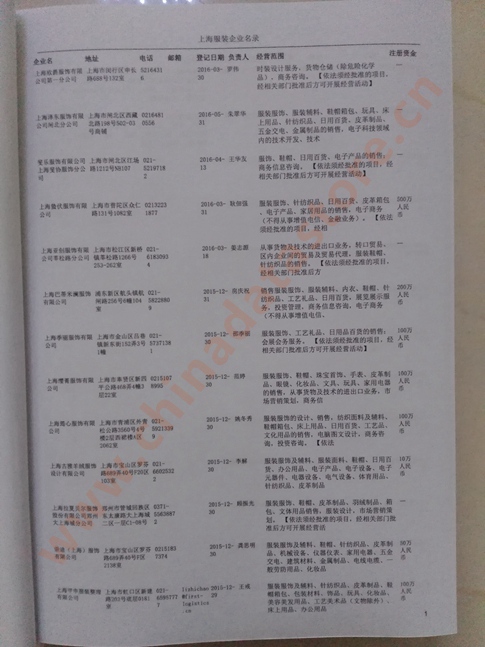 上海服裝企業(yè)精準(zhǔn)名錄