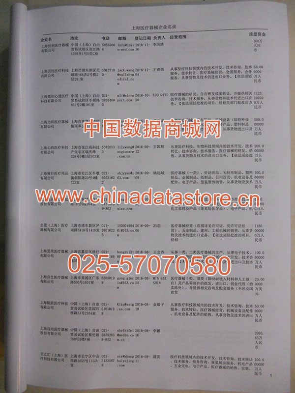 最新上海醫(yī)療器械生產(chǎn)與貿(mào)易企業(yè)黃頁(yè)數(shù)據(jù)更新日期2025年12月最新,全國(guó)上海醫(yī)療器械企業(yè)黃頁(yè),都是具有一定規(guī)模的上海醫(yī)療器械行業(yè)的注冊(cè)實(shí)體企業(yè),數(shù)據(jù)準(zhǔn)確率高,是您開(kāi)展各項(xiàng)營(yíng)銷(xiāo)活動(dòng)的必備資料。企業(yè)名單包括:企業(yè)名稱、地址、電話(以上必有,以下選有)、傳真、郵箱、登記日期、經(jīng)營(yíng)范圍、注冊(cè)資金等信息。上海醫(yī)療器械企業(yè)黃頁(yè)數(shù)據(jù)為Excel格式,信息可任意修改、復(fù)制、打印、導(dǎo)出及導(dǎo)入到傳真、郵件群發(fā)等軟件中,無(wú)任何限制。