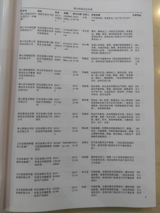 2021版最新唐山企業(yè)黃頁包括《唐山制造企業(yè)黃頁》、《唐山民營企業(yè)黃頁》,現優(yōu)惠價:280元/冊。每冊內容包括:單位名稱、地址、郵編、電話、傳真、郵箱、經營范圍等;唐山企業(yè)黃頁涵蓋了近幾年來最新成立的、有一定規(guī)模的企業(yè),具有非常高的營銷價值。有了這套黃頁開展業(yè)務也有了針對性,也省去了盲目去尋找客戶名單而浪費的時間了,工作效率也會有很大的提高。歡迎需要唐山企業(yè)黃頁的朋友及時聯系我們!