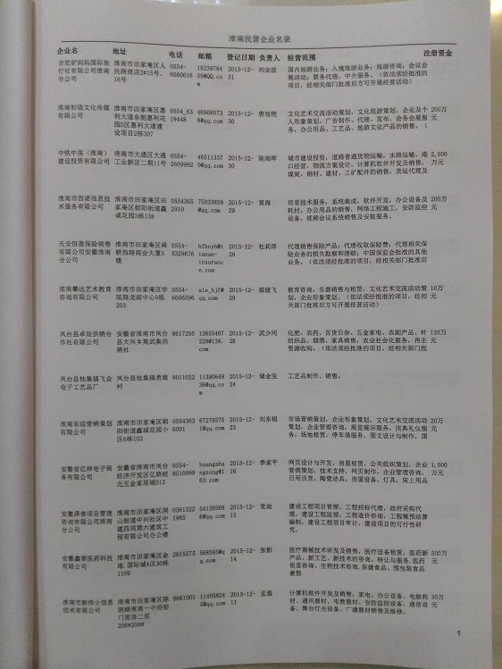 2021版最新淮南企業(yè)黃頁包括《淮南制造企業(yè)黃頁》、《淮南民營企業(yè)黃頁》,現(xiàn)優(yōu)惠價:280元/冊。每冊內(nèi)容包括:單位名稱、地址、郵編、電話、傳真、郵箱、經(jīng)營范圍等;淮南企業(yè)黃頁涵蓋了近幾年來最新成立的、有一定規(guī)模的企業(yè),具有非常高的營銷價值。有了這套黃頁開展業(yè)務(wù)也有了針對性,也省去了盲目去尋找客戶名單而浪費(fèi)的時間了,工作效率也會有很大的提高。歡迎需要淮南企業(yè)黃頁的朋友及時聯(lián)系我們!