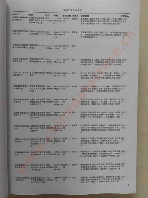 2021版最新蕪湖企業(yè)黃頁包括《蕪湖制造企業(yè)黃頁》、《蕪湖民營企業(yè)黃頁》,現(xiàn)優(yōu)惠價:280元/冊。每冊內(nèi)容包括:單位名稱、地址、郵編、電話、傳真、郵箱、經(jīng)營范圍等;蕪湖企業(yè)黃頁涵蓋了近幾年來最新成立的、有一定規(guī)模的企業(yè),具有非常高的營銷價值。有了這套黃頁開展業(yè)務也有了針對性,也省去了盲目去尋找客戶名單而浪費的時間了,工作效率也會有很大的提高。歡迎需要蕪湖企業(yè)黃頁的朋友及時聯(lián)系我們!
