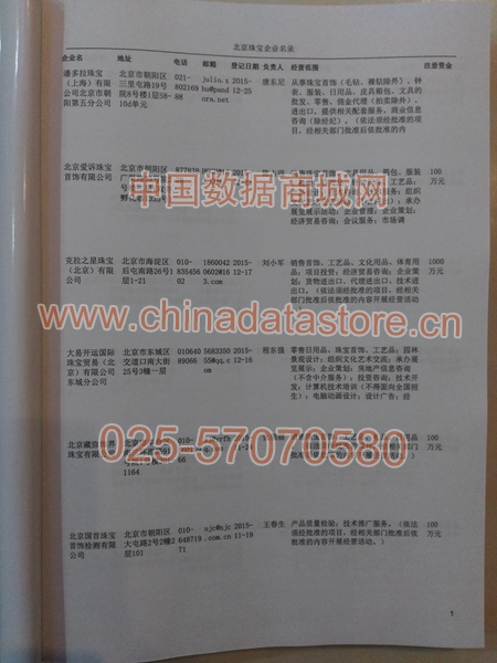 最新北京珠寶首飾生產(chǎn)與貿(mào)易企業(yè)黃頁數(shù)據(jù)更新日期2025年12月最新,北京珠寶首飾企業(yè)黃頁,都是具有一定規(guī)模的北京珠寶首飾行業(yè)的注冊(cè)實(shí)體企業(yè),數(shù)據(jù)準(zhǔn)確率高,是您開展各項(xiàng)營銷活動(dòng)的必備資料。企業(yè)名單包括:企業(yè)名稱、地址、電話(以上必有,以下選有)、傳真、郵箱、登記日期、經(jīng)營范圍、注冊(cè)資金等信息。北京珠寶首飾企業(yè)黃頁數(shù)據(jù)為Excel格式,信息可任意修改、復(fù)制、打印、導(dǎo)出及導(dǎo)入到傳真、郵件群發(fā)等軟件中,無任何限制。