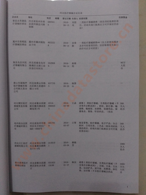 | 河北醫(yī)療器械企業(yè)黃頁 | 所有河北醫(yī)療器械企業(yè)黃頁 | 80% - 90% | 600元 | 附贈一冊河北醫(yī)療器械紙質印刷品 |