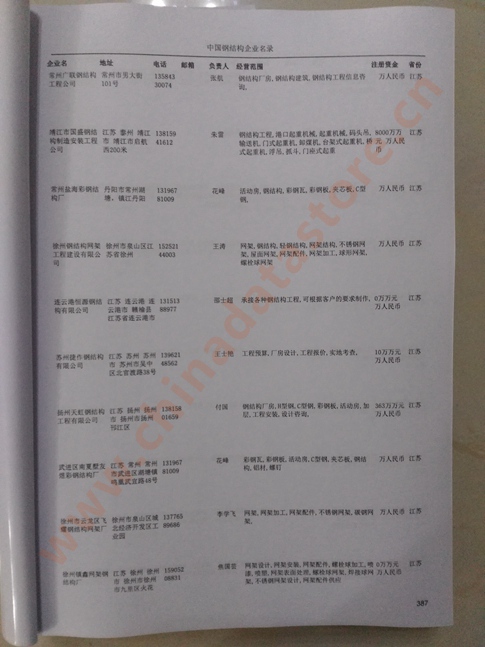 | 全國鋼結(jié)構(gòu)企業(yè)黃頁 | 全國所有鋼結(jié)構(gòu)企業(yè)黃頁 | 80% - 90% | 2000元 | 附贈(zèng)上下冊鋼結(jié)構(gòu)紙質(zhì)印刷品 |