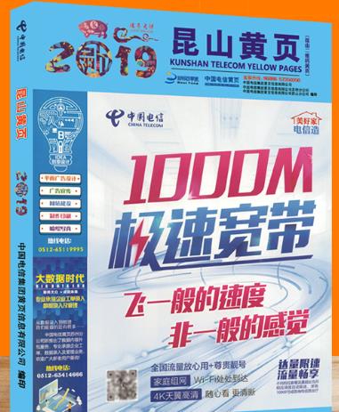 2019年最新昆山黃頁 中國電信蘇州分公司出版,424頁,16開本
