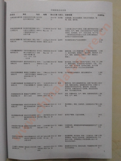2021版最新河南企業(yè)黃頁(yè)包括《河南制造企業(yè)黃頁(yè)》、《河南貿(mào)易企業(yè)黃頁(yè)》、《河南民營(yíng)企業(yè)黃頁(yè)》共三冊(cè),優(yōu)惠價(jià):280元/冊(cè)。每?jī)?cè)內(nèi)容包括:?jiǎn)挝幻Q、地址、郵編、電話、傳真、郵箱、經(jīng)營(yíng)范圍等;河南企業(yè)黃頁(yè)涵蓋了近幾年來(lái)最新成立的、有一定規(guī)模的企業(yè),具有非常高的營(yíng)銷價(jià)值。有了這套黃頁(yè)開展業(yè)務(wù)也有了針對(duì)性,也省去了盲目去尋找客戶名單而浪費(fèi)的時(shí)間了,工作效率也會(huì)有很大的提高。歡迎需要河南企業(yè)黃頁(yè)的朋友及時(shí)聯(lián)系我們!
