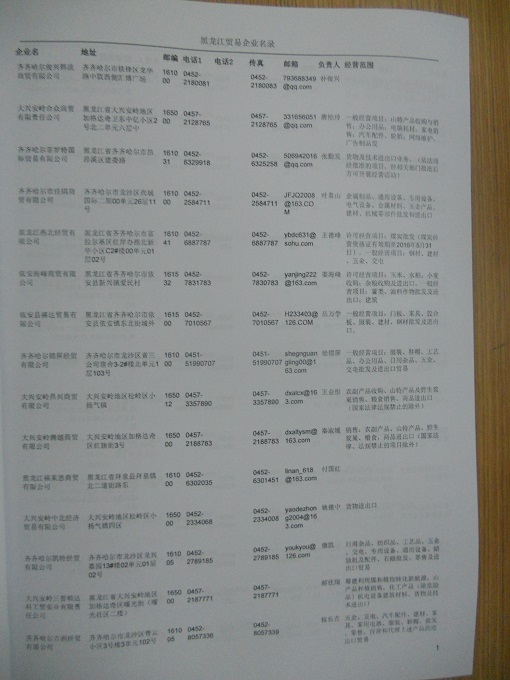2021版最新黑龍江企業(yè)黃頁(yè)包括《黑龍江制造企業(yè)黃頁(yè)》、《黑龍江貿(mào)易企業(yè)黃頁(yè)》、《黑龍江民營(yíng)企業(yè)黃頁(yè)》共三冊(cè),優(yōu)惠價(jià):280元/冊(cè)。每?jī)?cè)內(nèi)容包括:?jiǎn)挝幻Q、地址、郵編、電話、傳真、郵箱、經(jīng)營(yíng)范圍等;黑龍江企業(yè)黃頁(yè)涵蓋了近幾年來(lái)最新成立的、有一定規(guī)模的企業(yè),具有非常高的營(yíng)銷價(jià)值。有了這套黃頁(yè)開(kāi)展業(yè)務(wù)也有了針對(duì)性,也省去了盲目去尋找客戶名單而浪費(fèi)的時(shí)間了,工作效率也會(huì)有很大的提高。歡迎需要黑龍江企業(yè)黃頁(yè)的朋友及時(shí)聯(lián)系我們!