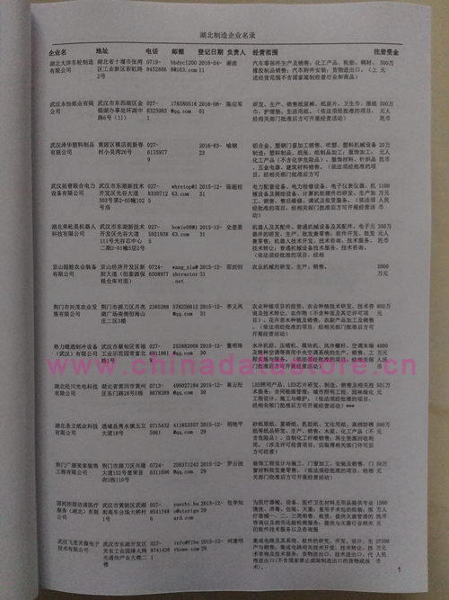 2021版最新湖北企業(yè)黃頁(yè)包括《湖北制造企業(yè)黃頁(yè)》、《湖北貿(mào)易企業(yè)黃頁(yè)》、《湖北民營(yíng)企業(yè)黃頁(yè)》共三冊(cè),優(yōu)惠價(jià):280元/冊(cè)。每?jī)?cè)內(nèi)容包括:?jiǎn)挝幻Q、地址、郵編、電話、傳真、郵箱、經(jīng)營(yíng)范圍等;湖北企業(yè)黃頁(yè)涵蓋了近幾年來(lái)最新成立的、有一定規(guī)模的企業(yè),具有非常高的營(yíng)銷價(jià)值。有了這套黃頁(yè)開(kāi)展業(yè)務(wù)也有了針對(duì)性,也省去了盲目去尋找客戶名單而浪費(fèi)的時(shí)間了,工作效率也會(huì)有很大的提高。歡迎需要湖北企業(yè)黃頁(yè)的朋友及時(shí)聯(lián)系我們!