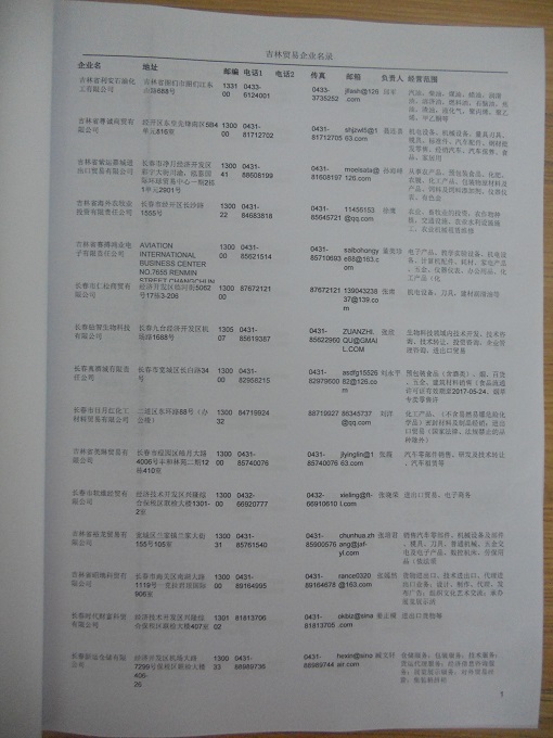 2021版最新吉林企業(yè)黃頁包括《吉林制造企業(yè)黃頁》、《吉林貿(mào)易企業(yè)黃頁》、《吉林民營企業(yè)黃頁》共三冊,優(yōu)惠價:280元/冊。每冊內(nèi)容包括:單位名稱、地址、郵編、電話、傳真、郵箱、經(jīng)營范圍等;吉林企業(yè)黃頁涵蓋了近幾年來最新成立的、有一定規(guī)模的企業(yè),具有非常高的營銷價值。有了這套黃頁開展業(yè)務(wù)也有了針對性,也省去了盲目去尋找客戶名單而浪費的時間了,工作效率也會有很大的提高。歡迎需要吉林企業(yè)黃頁的朋友及時聯(lián)系我們!