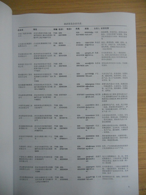 2021版最新陜西企業(yè)黃頁(yè)包括《陜西制造企業(yè)黃頁(yè)》、《陜西貿(mào)易企業(yè)黃頁(yè)》、《陜西民營(yíng)企業(yè)黃頁(yè)》共三冊(cè),優(yōu)惠價(jià):280元/冊(cè)。每?jī)?cè)內(nèi)容包括:?jiǎn)挝幻Q(chēng)、地址、郵編、電話(huà)、傳真、郵箱、經(jīng)營(yíng)范圍等;陜西企業(yè)黃頁(yè)涵蓋了近幾年來(lái)最新成立的、有一定規(guī)模的企業(yè),具有非常高的營(yíng)銷(xiāo)價(jià)值。有了這套黃頁(yè)開(kāi)展業(yè)務(wù)也有了針對(duì)性,也省去了盲目去尋找客戶(hù)名單而浪費(fèi)的時(shí)間了,工作效率也會(huì)有很大的提高。歡迎需要陜西企業(yè)黃頁(yè)的朋友及時(shí)聯(lián)系我們!