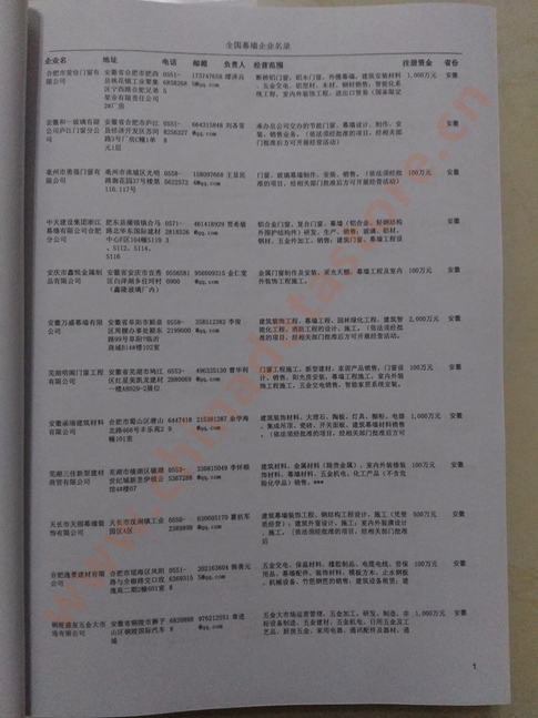| 某省或直轄市 | 如上海、浙江幕墻企業(yè)名單 | 80% - 90% | 600元 | 附贈一冊 幕墻企業(yè)紙質(zhì)印刷品 |