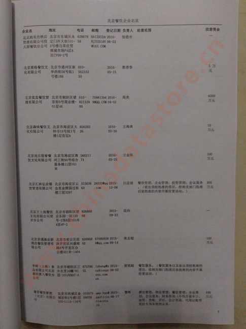 | 北京餐飲企業(yè)黃頁 | 北京各市縣餐飲企業(yè)黃頁 | 80% - 90% | 600元 | 附贈一冊北京餐飲紙質(zhì)印刷品 |
