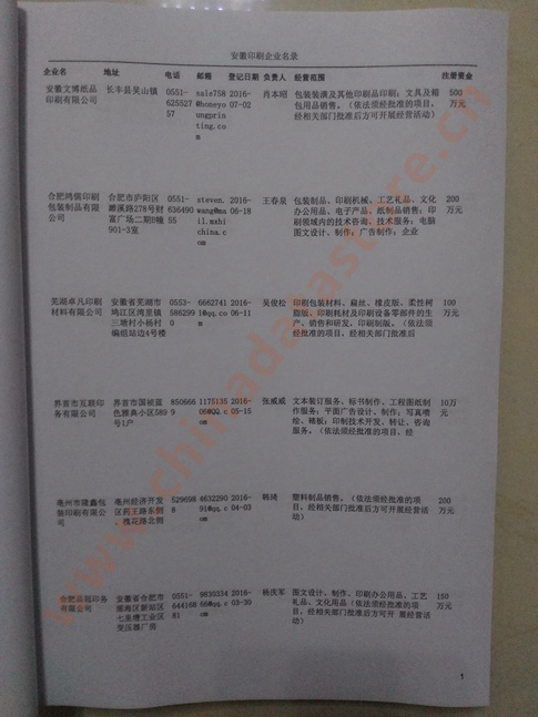 | 安徽印刷企業(yè)黃頁 | 所有安徽印刷企業(yè)黃頁 | 80% - 90% | 600元 | 附贈一冊安徽印刷紙質印刷品 |
