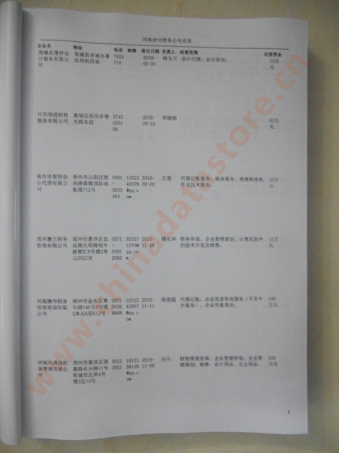 最新河南會計財務企業(yè)黃頁數(shù)據(jù)更新日期2025年12月最新,都是具有一定規(guī)模的河南會計財務行業(yè)的注冊實體企業(yè),數(shù)據(jù)準確率高,是您開展各項營銷活動的必備資料。企業(yè)名單包括:企業(yè)名稱、地址、電話(以上必有,以下選有)、傳真、郵箱、登記日期、經(jīng)營范圍、注冊資金等信息。河南會計財務企業(yè)黃頁數(shù)據(jù)為Excel格式,信息可任意修改、復制、打印、導出及導入到傳真、郵件群發(fā)等軟件中,無任何限制。