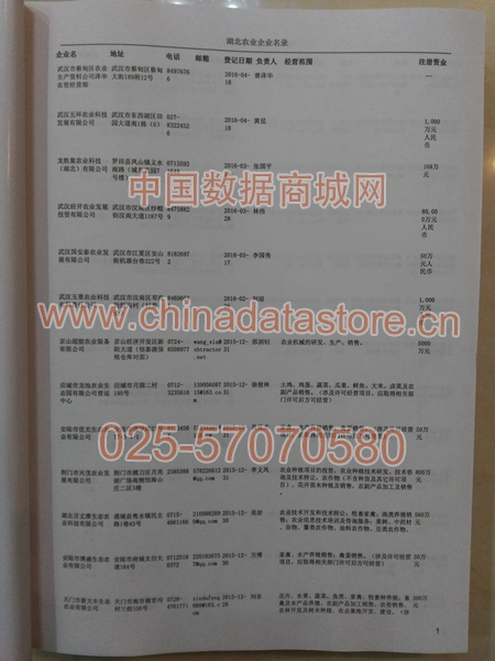 | 湖北農(nóng)業(yè)企業(yè)黃頁(yè) | 所有湖北農(nóng)業(yè)企業(yè)黃頁(yè) | 80% - 90% | 600元 | 附贈(zèng)一冊(cè)湖北農(nóng)業(yè)企業(yè)紙質(zhì)印刷品 |
