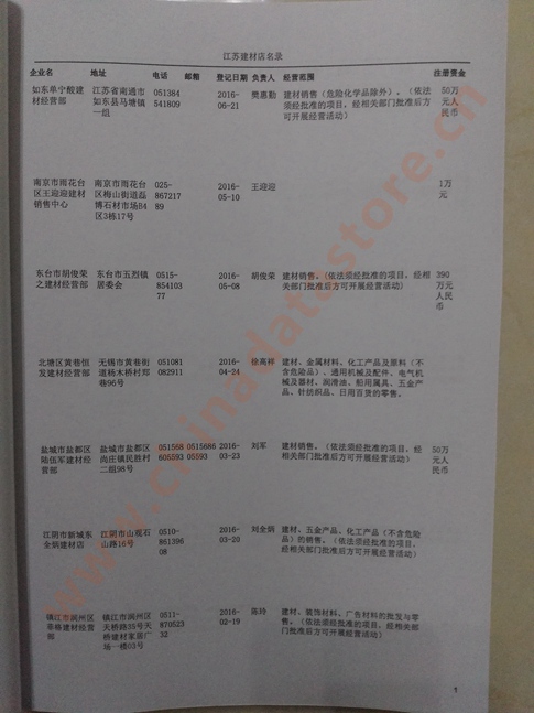 | 江蘇建材店黃頁(yè) | 江蘇建材店黃頁(yè) | 80% - 90% | 600元 | 附贈(zèng)一冊(cè)江蘇建材店紙質(zhì)印刷品 |