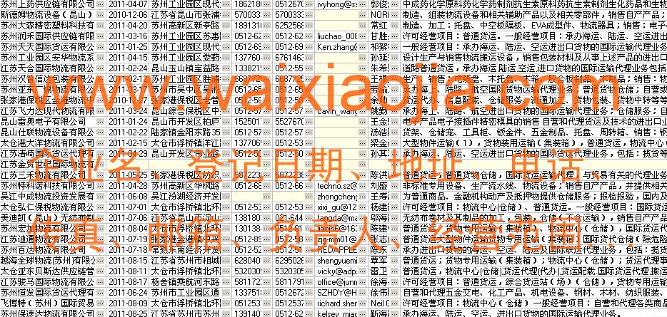 蘇州貨運(yùn)代理公司名單數(shù)據(jù)為Excel格式,信息可任意修改、復(fù)制、打印、導(dǎo)出及導(dǎo)入到傳真、郵件群發(fā)等軟件中,無任何限制。