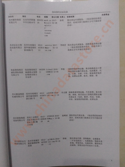 蘇州貨運(yùn)公司黃頁包括:企業(yè)名稱、負(fù)責(zé)人聯(lián)系方式、企業(yè)電話、傳真、Email、經(jīng)營范圍、地址、郵編等信息。