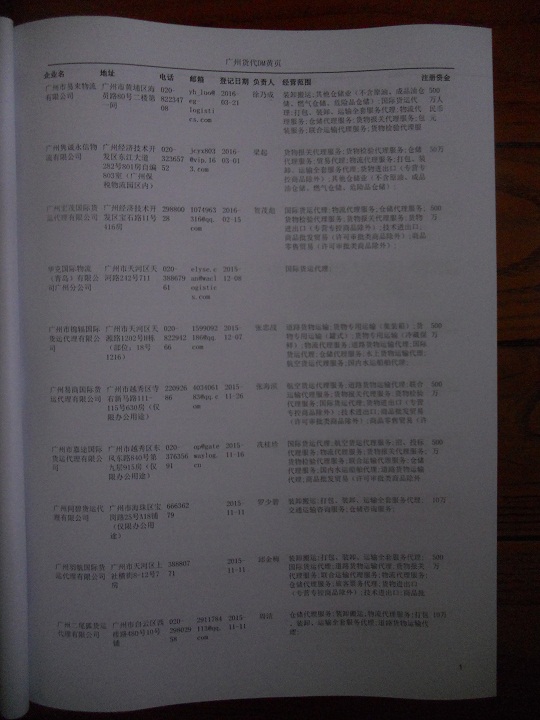 廣州貨運公司黃頁包括:企業(yè)名稱、負責(zé)人聯(lián)系方式、企業(yè)電話、傳真、Email、經(jīng)營范圍、地址、郵編等信息。