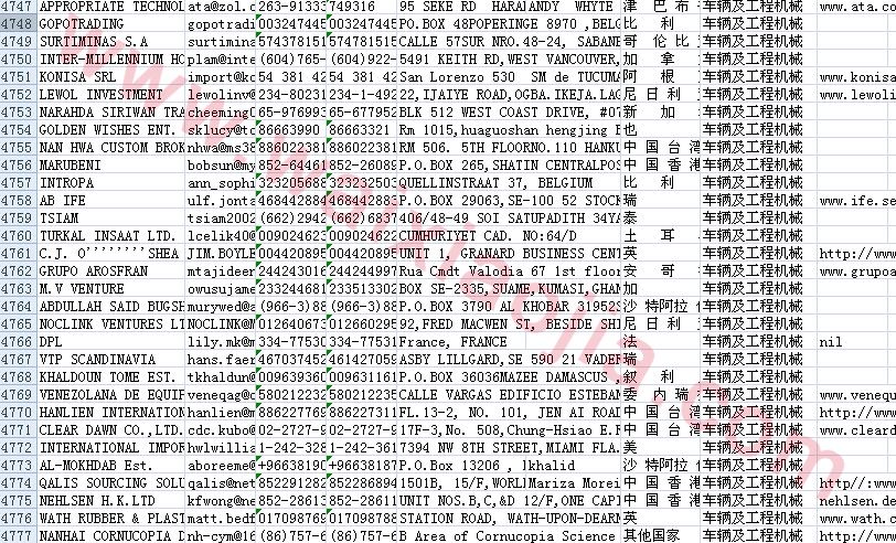 車輛及工程機(jī)械采購(gòu)商名單數(shù)據(jù)為Excel格式,信息可任意修改、復(fù)制、打印、導(dǎo)出及導(dǎo)入到傳真、郵件群發(fā)等軟件中,無(wú)任何限制。