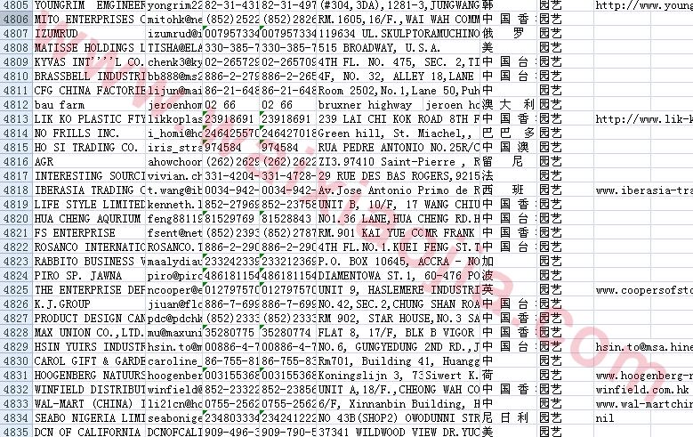 園藝采購商名單數(shù)據(jù)為Excel格式,信息可任意修改、復(fù)制、打印、導(dǎo)出及導(dǎo)入到傳真、郵件群發(fā)等軟件中,無任何限制。