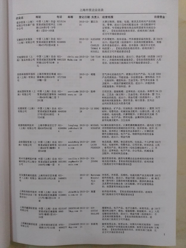 最新上海外資企業(yè)黃頁涵蓋了上海外商獨(dú)資企業(yè)、中外合資經(jīng)營企業(yè)以及港、澳、臺(tái)資企業(yè),包括上海日企臺(tái)企黃頁等,具體內(nèi)容包括:企業(yè)名稱、地址、電話、傳真、郵箱、經(jīng)營范圍、注冊(cè)資金等信息;上海外資企業(yè)名單里面的企業(yè)都一些中外合資的大企業(yè),這些公司經(jīng)濟(jì)實(shí)力都比較雄厚,出口產(chǎn)品也比較多,業(yè)務(wù)范圍都比較廣,跟他們開展業(yè)務(wù)往來都比較容易;有了上海日資臺(tái)資等企業(yè)黃頁開展業(yè)務(wù)也有了針對(duì)性,也省去了盲目去尋找客戶名單而浪費(fèi)的時(shí)間了,工作效率也會(huì)有很大的提高.歡迎需要客戶及時(shí)聯(lián)系我們!